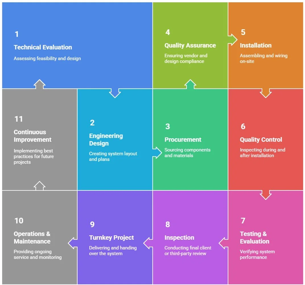 Our engineers have managed solar projects from 100 kW rooftops to multi-megawatt ground-mounted systems. We handle design, procurement, and installation with precision — ensuring long-term energy savings and superior returns.